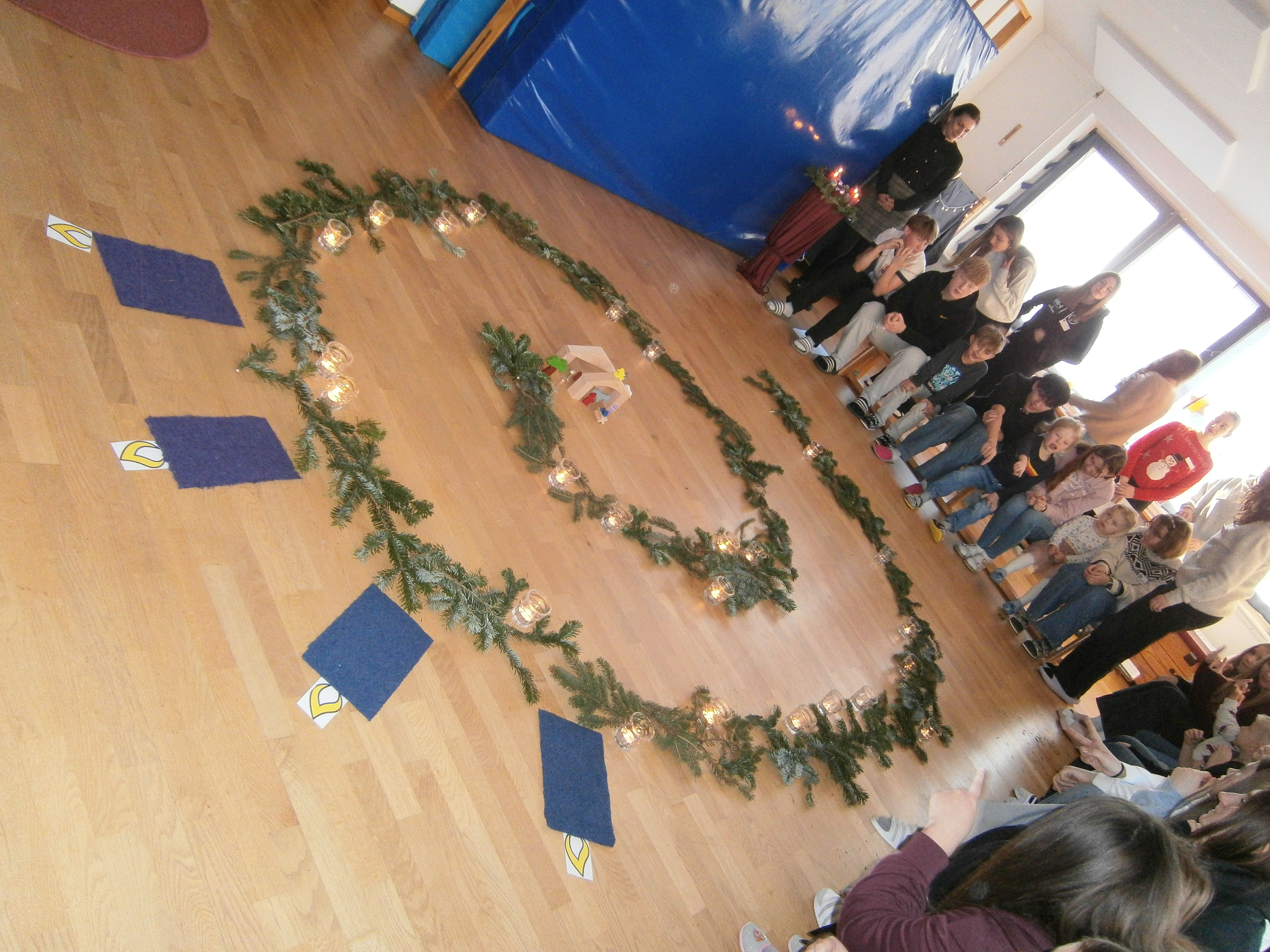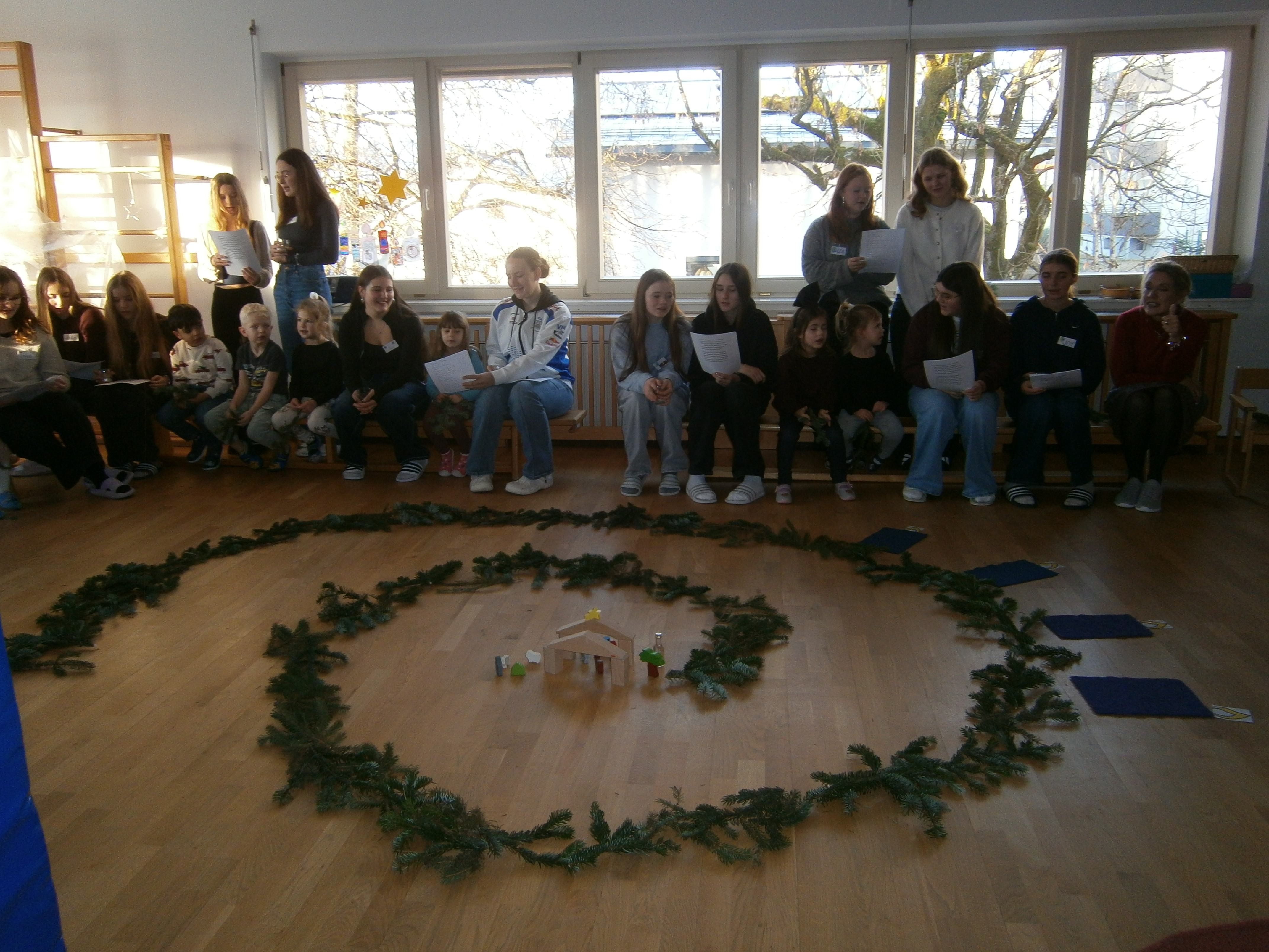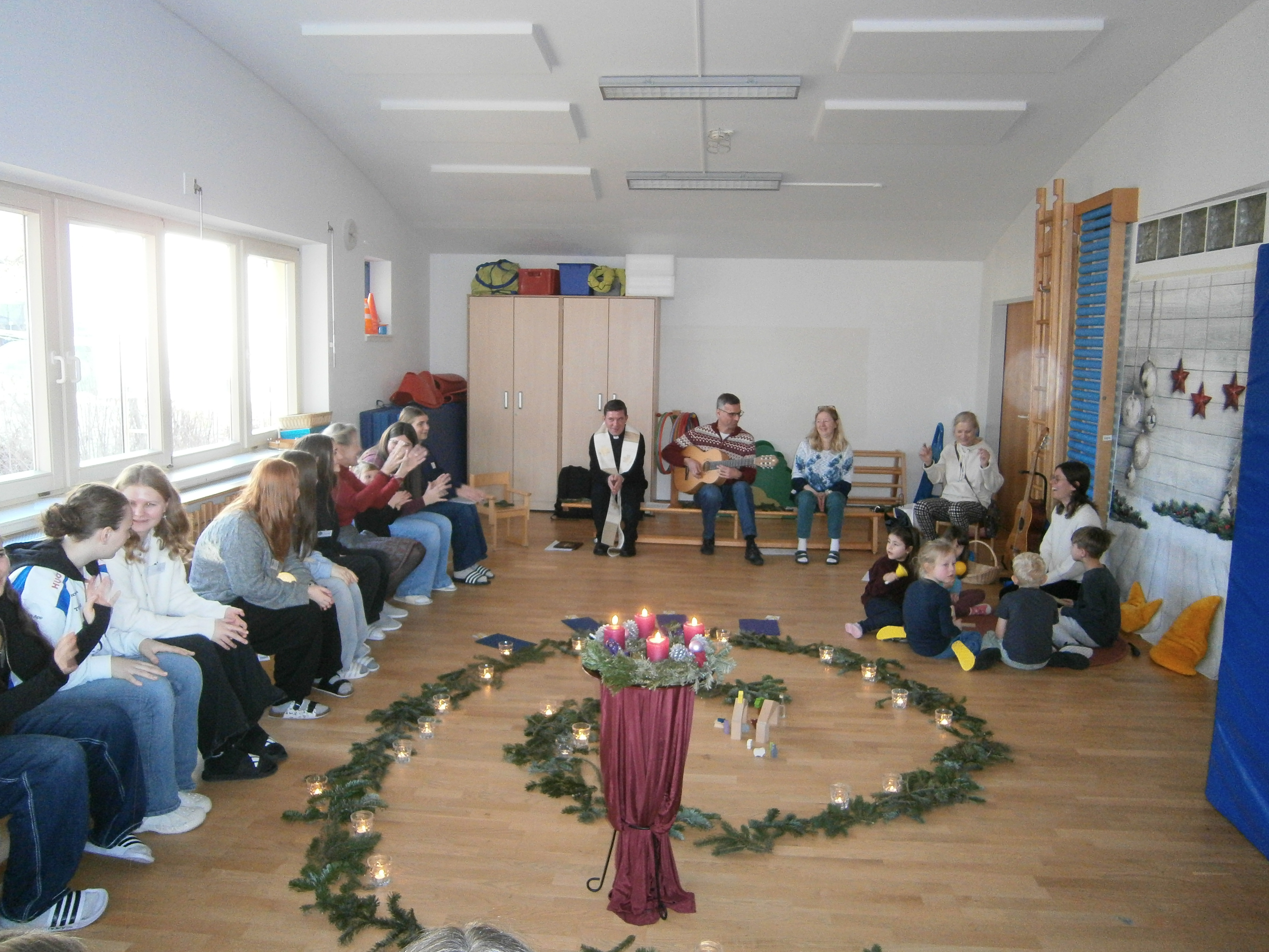 Kindergartenkinder und SchülerInnen der 1B Klasse feierten gemeinsam einen stimmungsvollen 4.Advent und verwandelten den Bewegungsraum in einen Ort voller Licht, Lachen und schöner Momente.